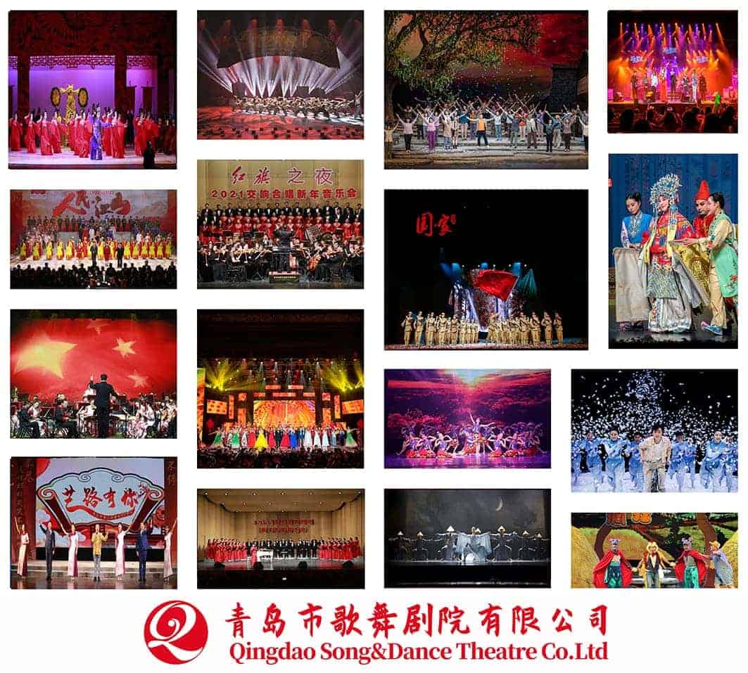 近年來,劇院更加注重藝術(shù)創(chuàng)作生產(chǎn),成功創(chuàng)作演出了大型舞蹈詩《大海夢(mèng)幻》、大型歌舞晚會(huì)《蔚藍(lán)青島》、大型民族歌舞《龍飛鳳舞》、方言劇《劈柴院傳奇》、舞劇《東廂記》《紅高梁》《法顯》、大型黨性教育音樂情景劇《誓言》、大型音樂舞蹈史詩《人民·江山》、民族歌劇《馬向陽下鄉(xiāng)記》《國(guó)·家》、呂劇《百川東到?!返取@“惠民院線”這一島城演出品牌,創(chuàng)作演出了《炫舞青春》舞蹈專場(chǎng)晚會(huì)、《看上去很美》現(xiàn)代舞蹈專場(chǎng)晚會(huì)、當(dāng)代舞劇《星河》、《奧斯卡金曲》《宮崎駿動(dòng)漫視聽》《黎明四季》《歷史的回顧》交響音樂會(huì)、交響組曲《五月的風(fēng)》、《征程》流行管弦音樂會(huì)、《搗蛋鬼維克多》系列交響兒童劇、《青島市新春民族音樂會(huì)》《中國(guó)夢(mèng)》《國(guó)風(fēng)雅韻-傳統(tǒng)民族樂器獨(dú)奏作品》、《歷史的豐碑》民族音樂會(huì)、《綻放》、《古典也時(shí)尚》現(xiàn)代民族音樂會(huì)、《鄧麗君金曲》演唱會(huì)、《致青春》音樂情景劇、《向共和國(guó)致敬》經(jīng)典歌劇片段主題晚會(huì)、《永恒的旗幟》情景歌會(huì)、“慢慢喜歡你”不插電live流行音樂會(huì)、《墻頭記》《借年》《小姑賢》《姊妹易嫁》等傳統(tǒng)呂劇、《孝感天下》《最美青島人》《笑談曲苑》《春暖花開》《歡歌笑語頌百年》等曲藝專場(chǎng)晚會(huì)、《大懶貓》《奔跑吧,公主》《三個(gè)丑家伙》《因?yàn)閻邸贰洞髠b慢吞吞》《年獸傳說》等原創(chuàng)兒童劇以及《長(zhǎng)征組歌》《中外名曲》《頌歌獻(xiàn)給黨》合唱音樂會(huì)等數(shù)十臺(tái)演出,演出票房爆滿,觀眾好評(píng)如潮。期間,劇院多次參與組織、策劃、承辦省、市級(jí)各類大型節(jié)慶活動(dòng),成功舉辦了歷屆青島國(guó)際啤酒節(jié)、海洋節(jié)、菏澤國(guó)際牡丹節(jié)、2008奧帆賽開幕式文藝演出、上合峰會(huì)大型文藝演出、多次應(yīng)邀參加央視春節(jié)、元旦、國(guó)慶等大型晚會(huì)錄制、創(chuàng)排演出慶祝改革開放40周年大型情景歌舞劇《筑夢(mèng)》、2019年參加慶祝人民海軍成立70周年演出等大型文藝演出等;多次隨市領(lǐng)導(dǎo)出訪徳國(guó)、英國(guó)、韓國(guó)、日本、美國(guó)、俄羅斯、澳大利亞、新加坡、馬來西亞、泰國(guó)、贊比亞、坦桑尼亞、埃塞俄比亞、斯里蘭卡等國(guó)家進(jìn)行文化交流演出。